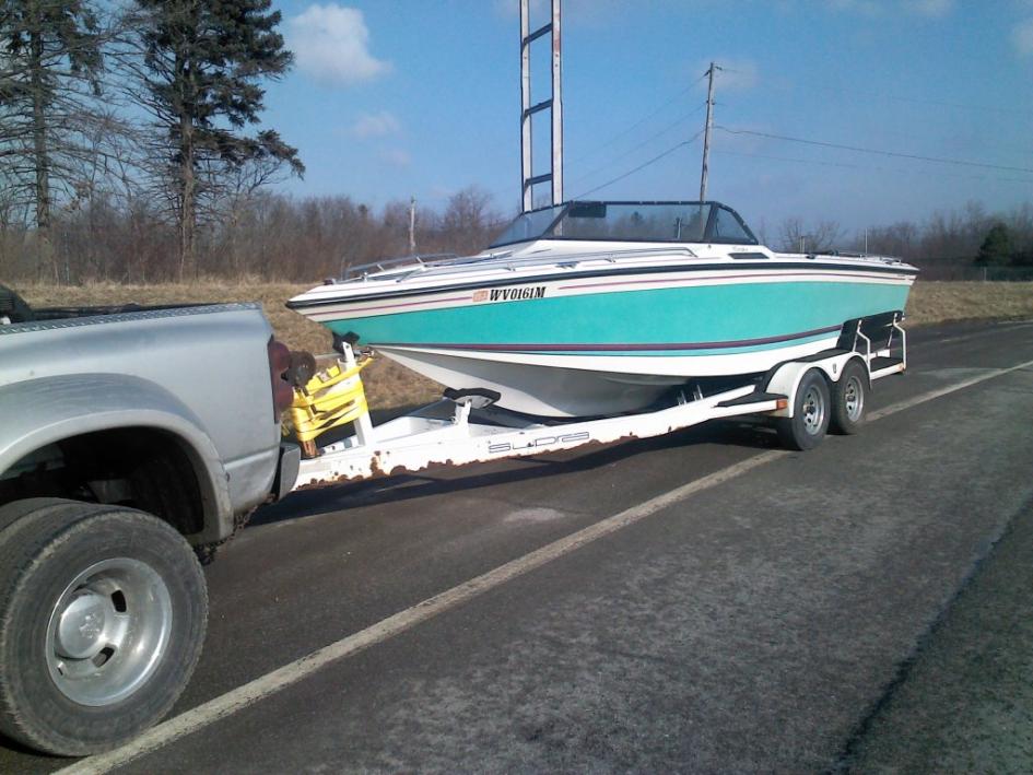 For many years I have wanted an Inboard ski boat. When I was 16 I bought a '67 correct craft with a I/O four cylinder. We had fun with it. But I then noticed that the inboards were a lot better. Now 30 years later I thought I would buy one I another boat. I found this piratta on Craigslist and went and looked at it. Totalled my car on the way up there last weekend to look at it. Went back up with my truck this weekend and brought it home on rotten tires and all. Took it straight to a restoration shop thinking I would have him check it out and see what he would charge. Well he was nice enough but a little crazy. He wanted 10 grand to do from the stringers up. I was think more like get it on the water this year and down the road put more money into it. I left it at his shop for him to evaluate. He said he would have to pull the carpet and some of the floor to give me a better idea of the stringers condition.