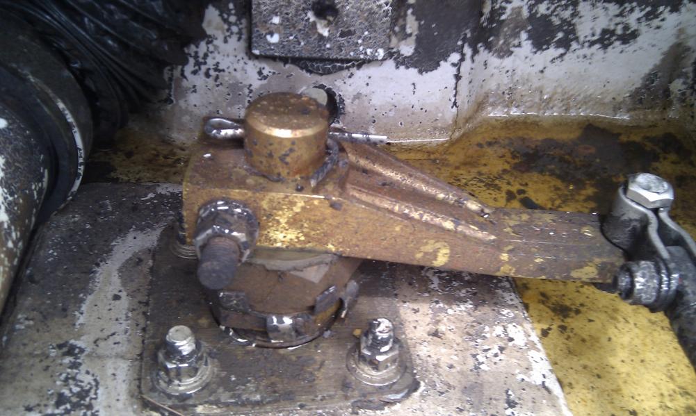 I bought a 1992 Comp in November and have spent the last few months attempting to return it to its former glory. Among the problems I've encountered is a large amount of slop in the rudder (fore & aft, left & right). Yesterday I removed the rear seat and gas tank to get to it, and I found the set up you'll see in the picture attached. I was expecting to just remove a bolt from a tiller arm which "clamped" onto the rudder shaft. Instead it's got a threaded stud, with no head. Is this supposed to thread out? Do I need to tap it out?