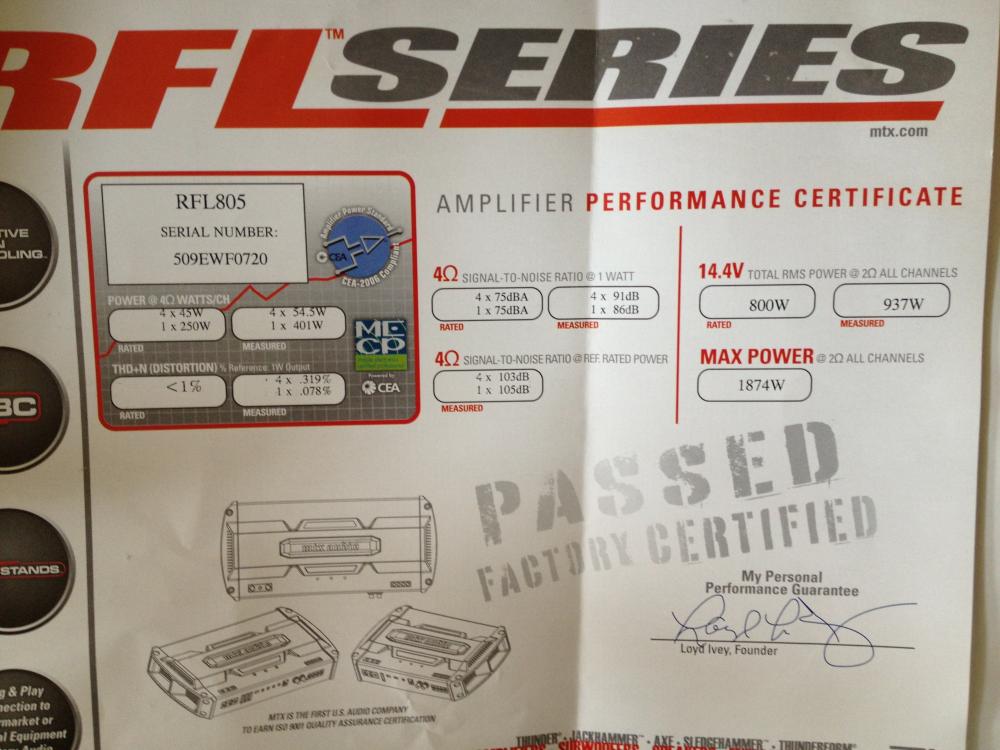 MTX 5 Channel Amp, 1874 W Max / 937 W RMS