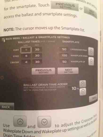 Just took my boat if for service last week and unbeknownst to me they reset all my ballast fill time and smart plate set ups. I'm still working on the ballast fill times, but I had a question about the smart plate settings. It looks like from the factory the settings are 100 for wakeplate down and 50 for wakeplate up? Is that how I should leave it? Also, crossover point is set at 50...what is crossover point?Attachment 14956Attachment 14957