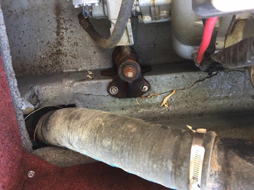 Owner said something about "replacing the foam" 10 years ago and the floor boards being replaced and New Carpet. He also said motor mounts were done. I found a couple soft spots in the floor (So I am questioning the Floor board repair even though the carpet looks new) Boat is rough, but hull and interior is in good shape......then I saw this.....Stringers look to be fiberglass, but the two on the Starboard side have Cracks in them