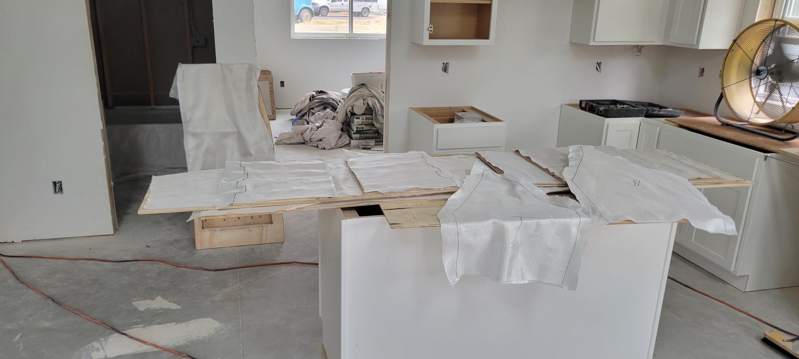 Attachment 19992Glassing the edges of the floor. The blue is some really good left over 1/2" plywood from a job.