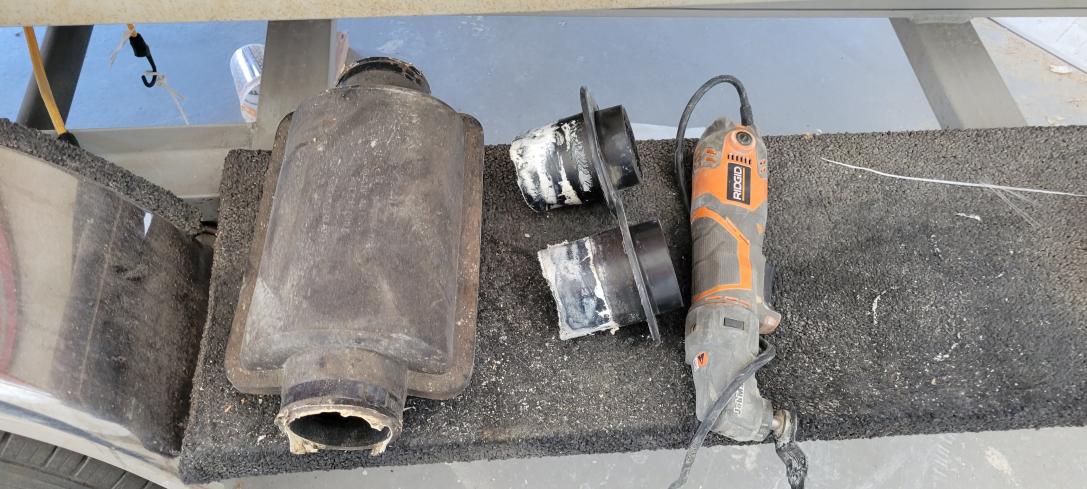Attachment 19989I'm ditching the rubber mufflers & plastic through hull exhaust fittings. They are being replaced with 3" exhaust tubing and stainless through Attachment 19990hull fittings. For the muffling there will be the guts from 2- 36" glass packs. The last owner got the exhaust a little hot at some time.