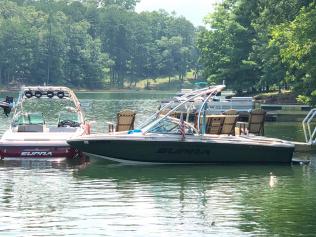 Well the wife and I made it to Nottely. Pretty good trip. 8 hours of driving. The 1997 12 valve pulled the 24ssv through the mountains like a champ. Once on the water we had a little mishap. Not really ready to discuss it. But everyone is ok. Except the drivers side of my boat and the prop of Daniels pontoon boat. Shane is Knoxville is going to have a major project this winter. Not going to let some cosmetic damage ruin my week of fun!