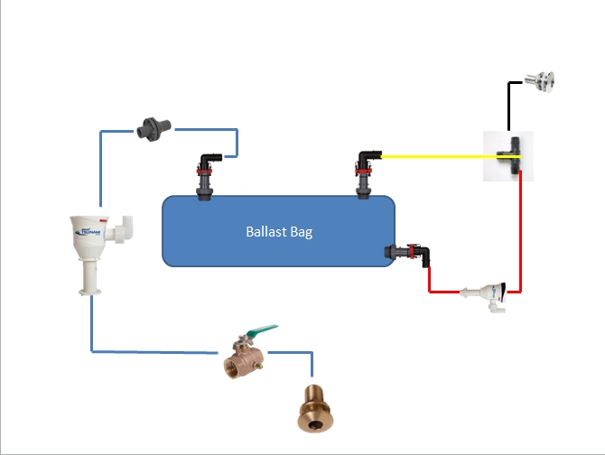He recommended using the 800's 3/4" all around to stay as factory and low budget as possible. What I was told is that you can use the rule pump that is already there and hooking it up straight to the inlet of the center bag. Getting rid of the manifold and sprinkler valves setup all together. Spencer said to put the check valve after the pump although I kind of think it is not necessary or better to install on the drain line. I am going to leave my scupper intake as-is and install two new mushroom style intakes, those two will fill the rear 750 bags. I am just at the point where I need to know what is better setup. I don't really like the idea of drilling a new hole in my boat, but if I have to I will. It sucks not being able to use ballast on your wakeboard boat!