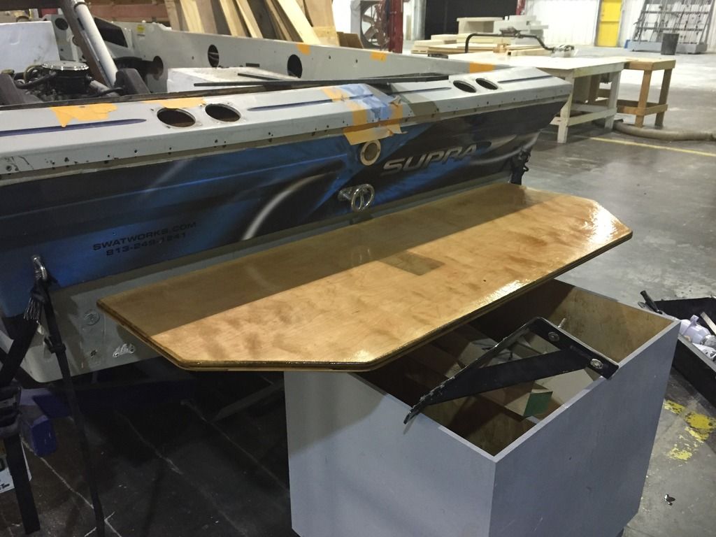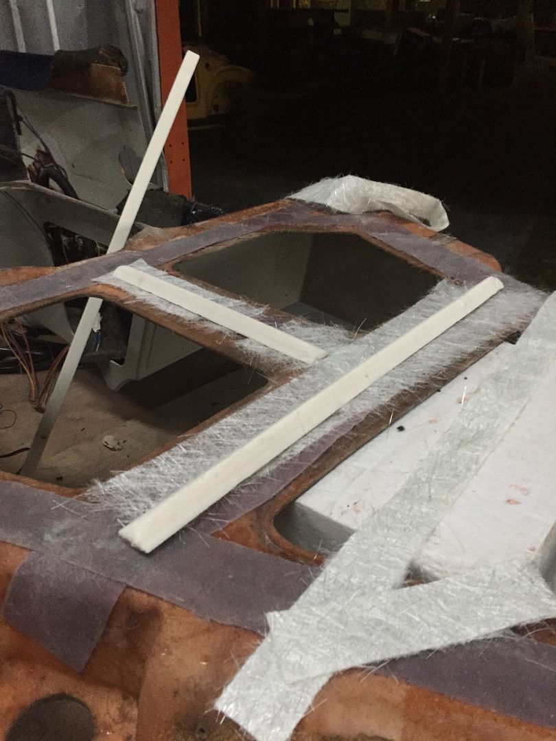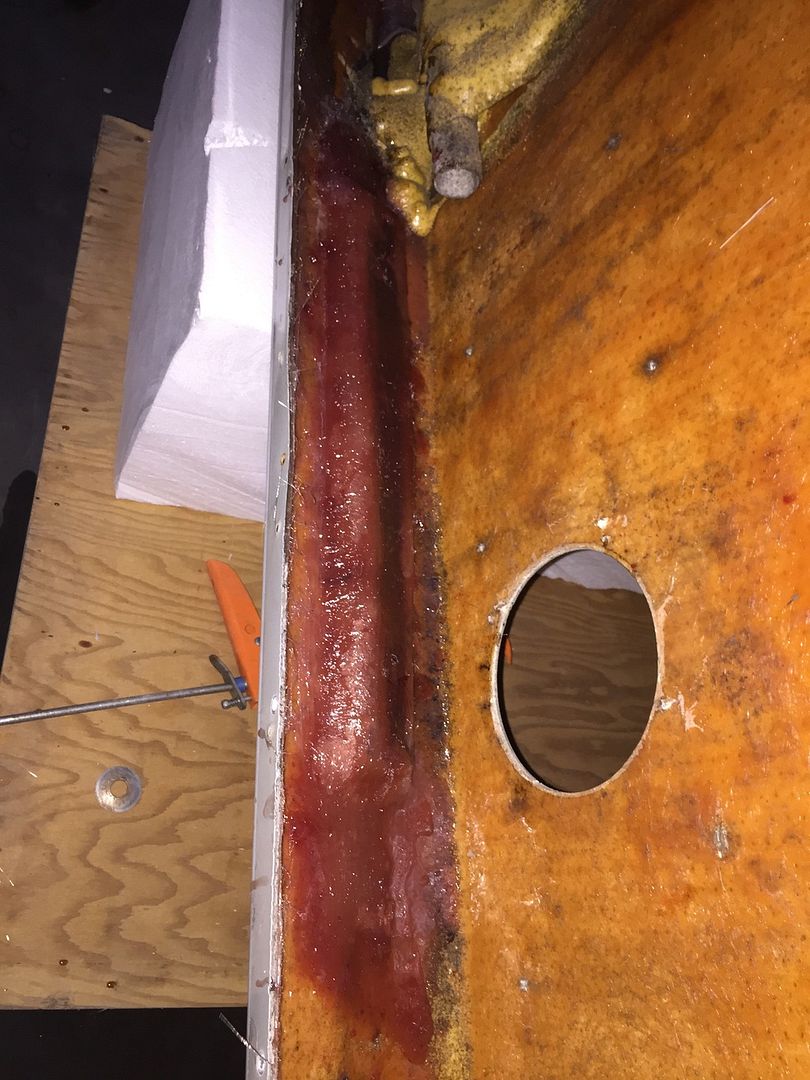 Added 1/2 round foam core embedded in 1.5 oz csm and covered with 4.5 oz of csm to stiffen the playpen area.