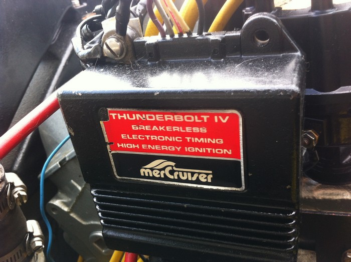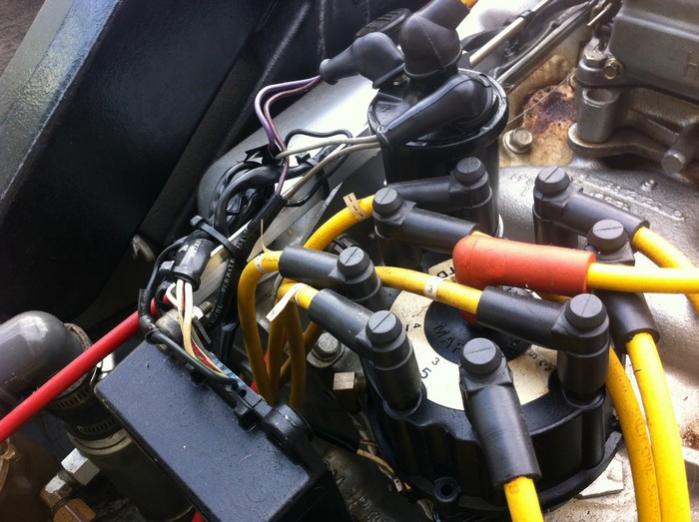 I will stay with my electronic ignition. I fixed it, 3 spark plug wire connectors were dead (rust inside, and bad connection to the top of spark plugs). It seems to not be the factory ignition system, as it's writen "Mercuriser" on it.
