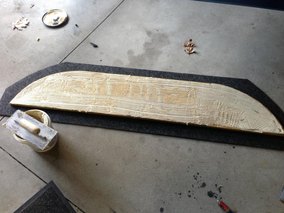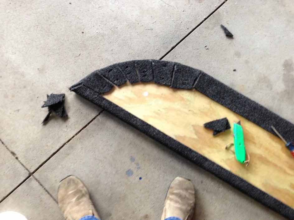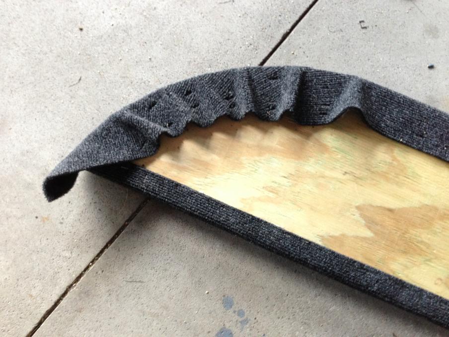 Got it. That's pretty much the same process I did, but I think what confused me for a minute was that there was glue completely covering the plywood (or maybe that's the carpet side of the plywood). I originally thought you were going to do something with the "non-carpet" side of the piece, but I've caught up now.