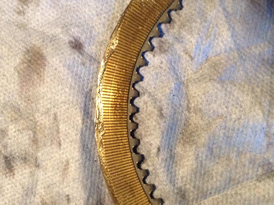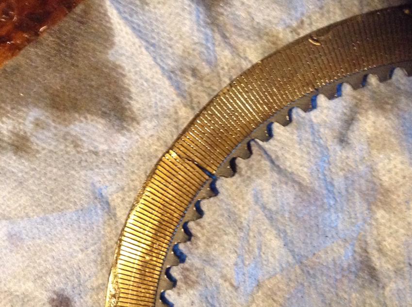 Got it apart. Seems like the plate pressure springs had some issues. Three of them were broken in two pieces and caused some damage to the friction clutch plate. The others springs were bent and wedged between the plates. It's worn hard on the edges and has a pretty good crack. It also seems that it blew a hole through the forward and reverse assembly bushing. Think that might of been the problem.Attachment 15789Attachment 15790