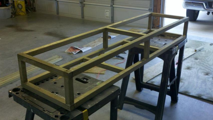 Finally getting a start on the interior. Engine cover base is complete and carpeted. Spent waaay too much time trying to figure out details for a traditional rear bench that can convert to a sundeck and accommodate the two X-2 fatsacs. Finally decided to shoot the project engineer (me) & just build something & hope it all works out. PT 2x2 frame with 1/2" PT plywood skin. I can already tell things are tighter than anticipated & plumbing the sacs is gonna be challenging.