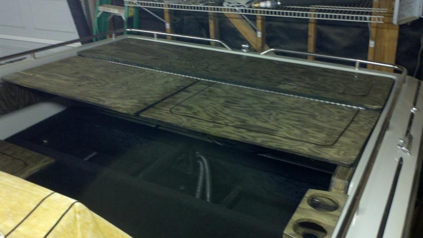 I had to make the rear bench seat back and armrests extra wide to support the edges of the seat bottoms when "up" since the hull tapers out at the top. Once the final height is set with the upholstery, I'll add some hinged panels to the underside of the seat bottoms that fold down to support the inner edges - fronts will remain open. I've got 2 MC X-2 sacs (450# each) that fit underneath - half full with the seat bottoms down, full sacs in the "extended sundeck" mode.