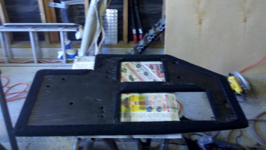 Finished carpeting the amp rack last night - 1/2" treated ply coated with poly resin (I ran out of CPES), painted back, & carpeted front. The amp rack will go on the starboard side of the driver foot well and fasten to a flange I built into the new throttle panel and to the new bracing under the bow. Cut out the backs to aid cooling the cheap A/B amps. I hope to mount & prewire the amps, fuses, dist block, PAC LC-1, etc. this weekend.