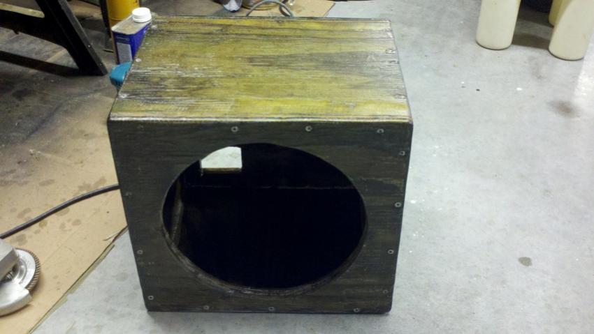Finally, got the sub enclosure built. Didn't want to worry about MDF getting wet, so used 3/4" treated ply, glued & screwed, with a coat of poly resin.