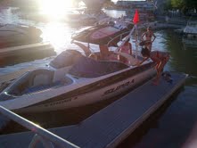 I love this boat been out every weekend pretty much all summmer, lots of compliments on it as well. I call it the panty dropper just cause its got such a sleek look. Now for the surfing i did the 1100 on each side and just ordered a new prop from Acme per with 10-12 people and the ballast they reccomended the 2079 it will tap out around 28MPH but ill i do is surf so iam good with it. Only negitive is it takes about 10min to swap surf sides.