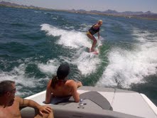 Love the boat but not sure we have it tuned optimally yet for adults. Friends have a 2008 24 launch and said their son surfed for 10