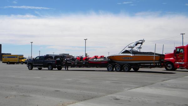 I've been off the Forum for way too long, but here's a quick shot of the boat and tow rig, finally got her out of the shop from a long winter!!