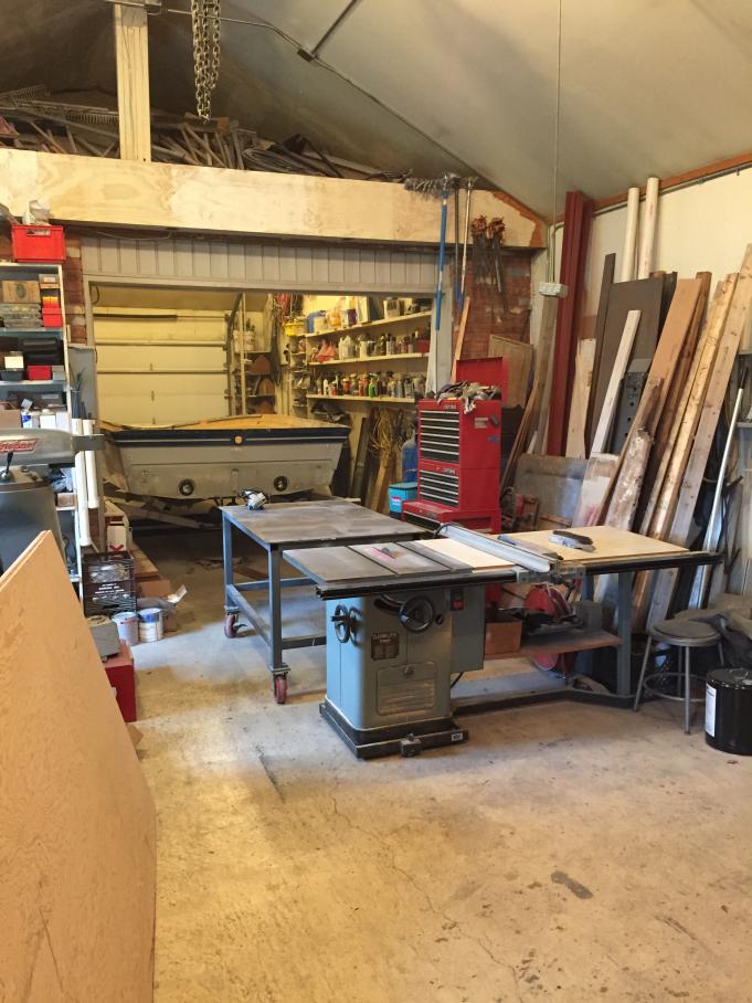 Spent the first hour or two of my morning cleaning the garage and setting up the table saw for the day. First cut the 1/2" plywood to pad out the transom, and then cut the other three pieces. Another reason I decided to not go with the one piece transom is if, god forbid, the swim deck holes were to leak and get the wood wet. I would simply have to replace individual pieces instead of the whole thing. I'm hoping this never happens again, but at least it makes life easier for whoever owns it twenty years from now.