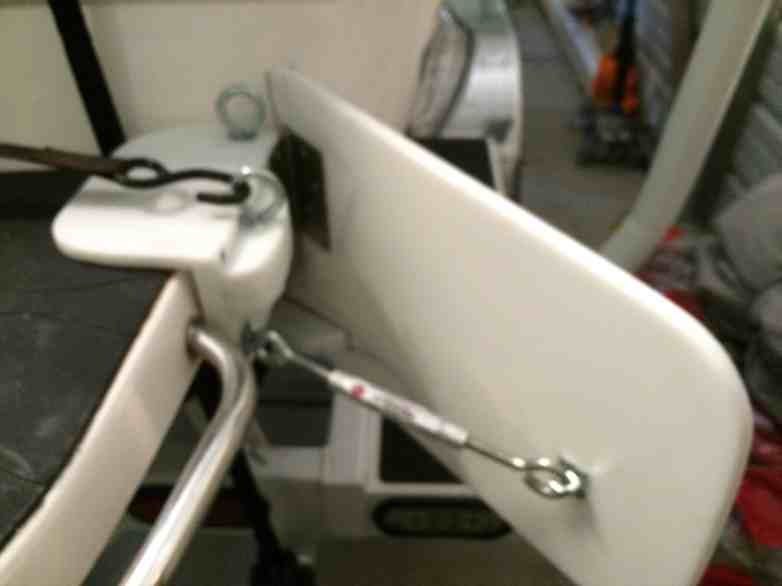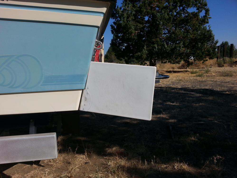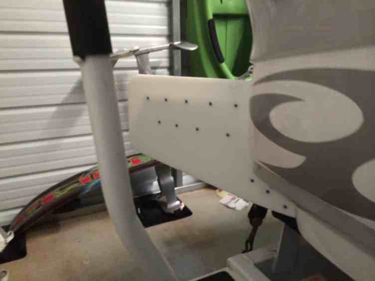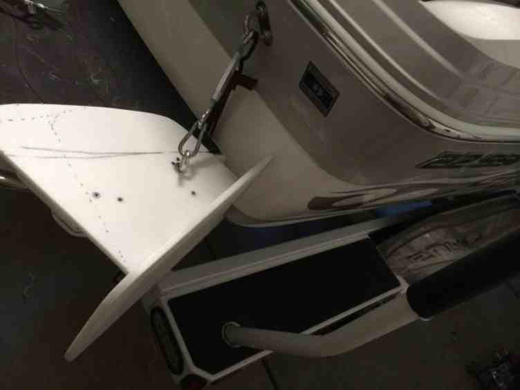 I modeled it from yours Cornrickey, just using cheaper materials, lol, an old cutting board to be exact! It worked great, and there are a few improvements right of the bat I can make to make it better moving forward. For starters, I was not able to find the adjustable turnbuckle you used on your Cornrickey anywhere, so the surf gate installed simply rests along the rail of the swim step from the pressure of the water against it underway, basically at the same exact angle of the hull of the boat, I believe being able to adjust the gate outward to lets say 10-15 degrees will make a huge difference! I did find those turnbuckles you used bunji169 but I could not see an effective way to incorporate them into my design, and I was also worried all the play with this open eyelets would be a problem, you will have to let us know how they work. Also, the gate could be longer, at this time it falls short of the end of the swim step, I think those two things will make a huge difference! Also, possibly building a new swim step, and raising it up a little bit but I like my fiberglass one now, and I think between the two things I mentioned, it should not be an issue.