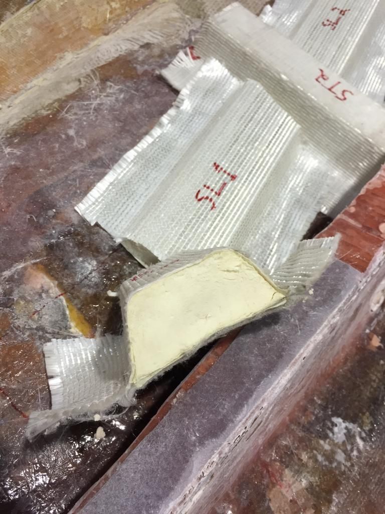 I am using these beams as for my outer stringers and wings. I still have to make my wedges to the shape of the deck. I'll glass these in first. The main longitudinal stringers and any wedges that will be receiving screws from securing the deck will have a layer of trevira glassed in to do be able to do so.