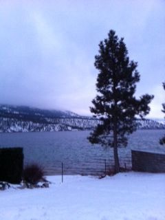 23 degrees F today (-5 C ) with low valley cloud and a fair bit of snow down to the waterline.