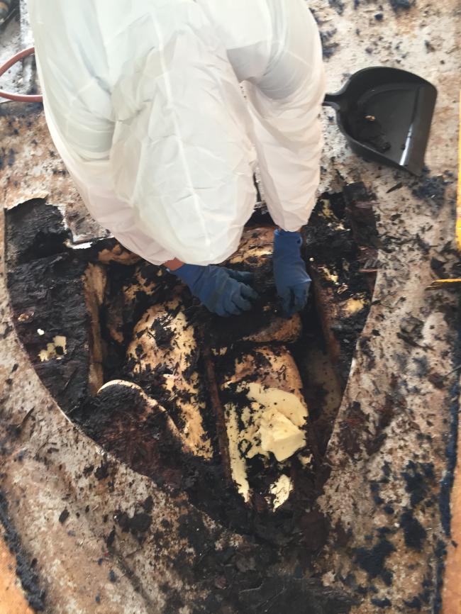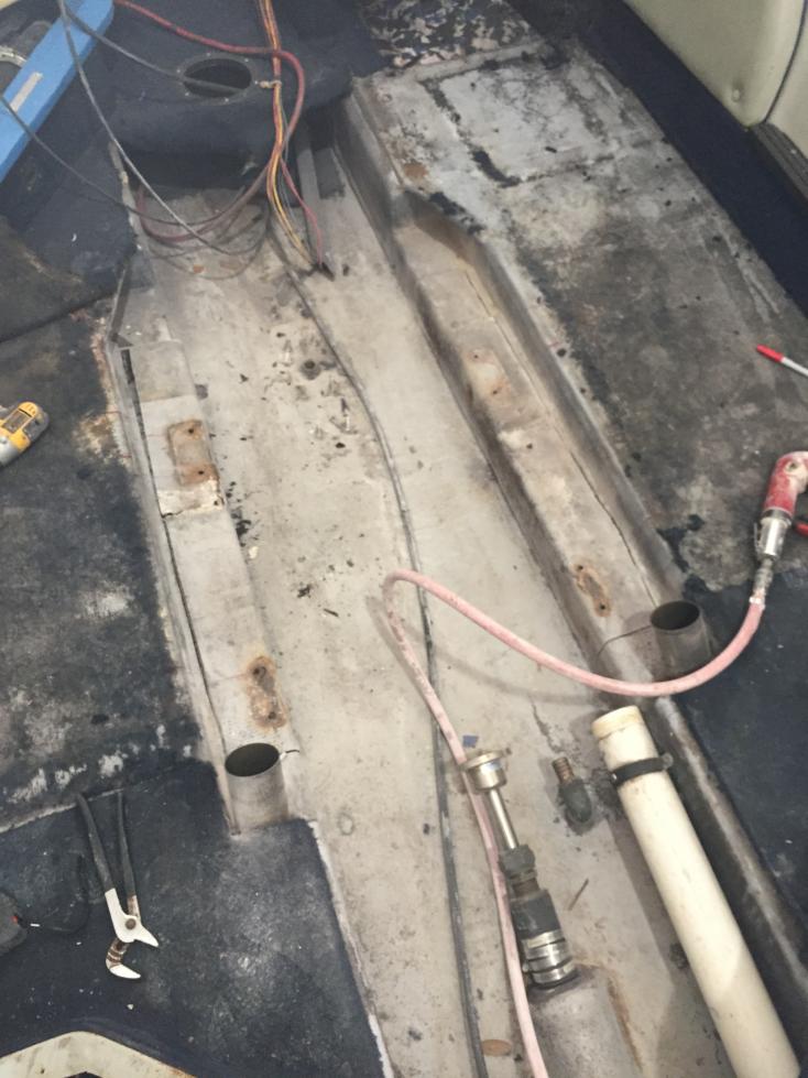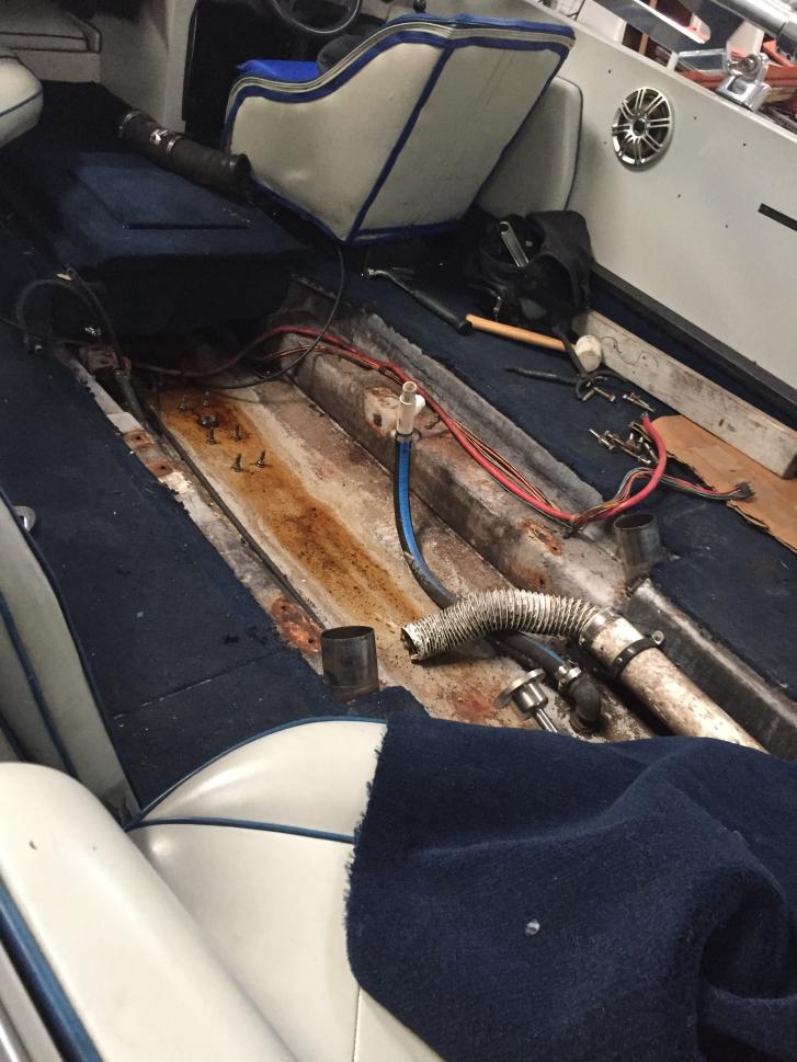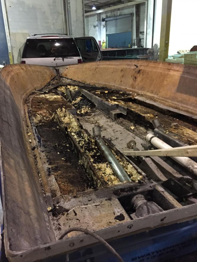 Initially, my plan was to do a partial repair of the stringer only on the engine mount area. I cut out the portside and some parts were coming out like compost and even mud. The starboard side was actually pretty decent. I figure since I was doing on side might as well do the other. I cut inspection windows in the soft spots on the floor saw that the foam was soaked. There was water intrusion from the screw holes used to secure the helm seat and the aft seats to the sole and no limber holes for the water to drain. My next thought was to do a "cap on" floor/stringer restore, but having a soft spot in the play pen, I know a "cap off" restoration will be in the near future anyways. I read a few stringer/floor restoration threads on here, but I never thought that I would be writing one myself...SOB!