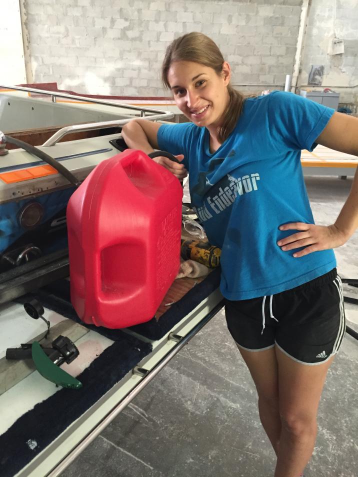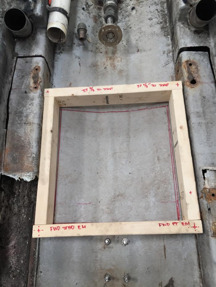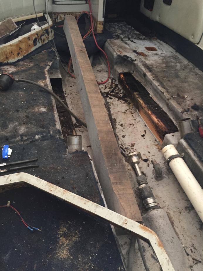 Wanting to be able to use reverse, I did a little more inspecting and research. I saw that the keyway was worn out a little on the shaft but more so on the coupler. In reverse, the shaft would slip inside the coupler and unscrew the nut. I brought the coupler to a machine shop to recut the keyway. I installed it and the vibration was really bad. Thinking back, I know there shouldn't be any play at all in the key way. Looking for the quick fix, I ended up buying a new shaft and coupler from skidim. After getting it installed, I noticed that I was a little misaligned and upon further inspection noticed that the stringer on the portside was hollow and the bolt was able to spin freely.